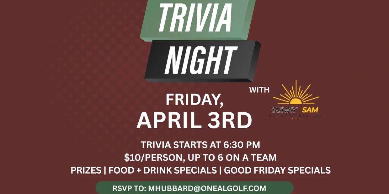 Join us for a fun-filled Trivia Night on Friday, April 3rd at 6:30 PM! Gather your smartest (or most fun!) friends and put your knowledge to the test for an evening of friendly competition, prizes, and great specials.